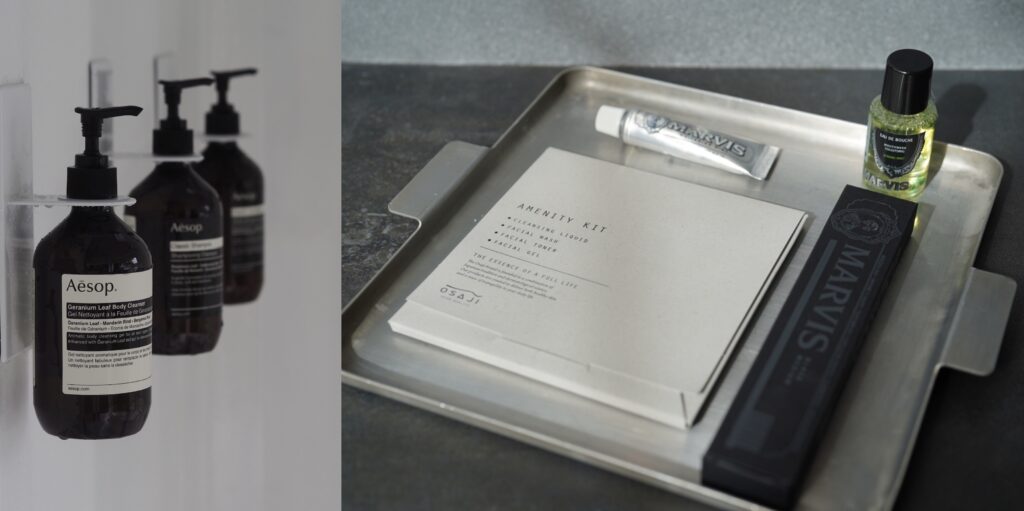 シャンプー、コンディショナー、ボディソープ、歯ブラシ、スキンケアアメニティ、バスタオル、フェイスタオル